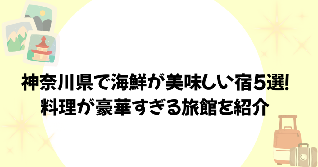 神奈川県で海鮮が美味しい宿について紹介します。こんなお悩みありませんか? お悩み せっかく泊まるなら料理が美味しい宿に泊まりたい 新鮮な魚介をしっかり味わえる神奈川県の宿を探している 神奈川県で海鮮が評判のいい宿をまとめて知りたい せっかく泊... 宿