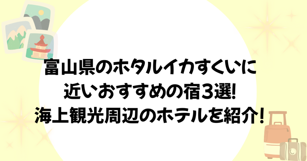 富山県のホタルイカすくいに近い宿について紹介します。こんなお悩みありませんか? お悩み ホタルイカすくいに行きやすい宿を探している 海上観光をするのに移動が楽な宿がいい 富山湾の旬の味覚も一緒に楽しみたい そこで今回は富山県のホタルイカすくい... 宿