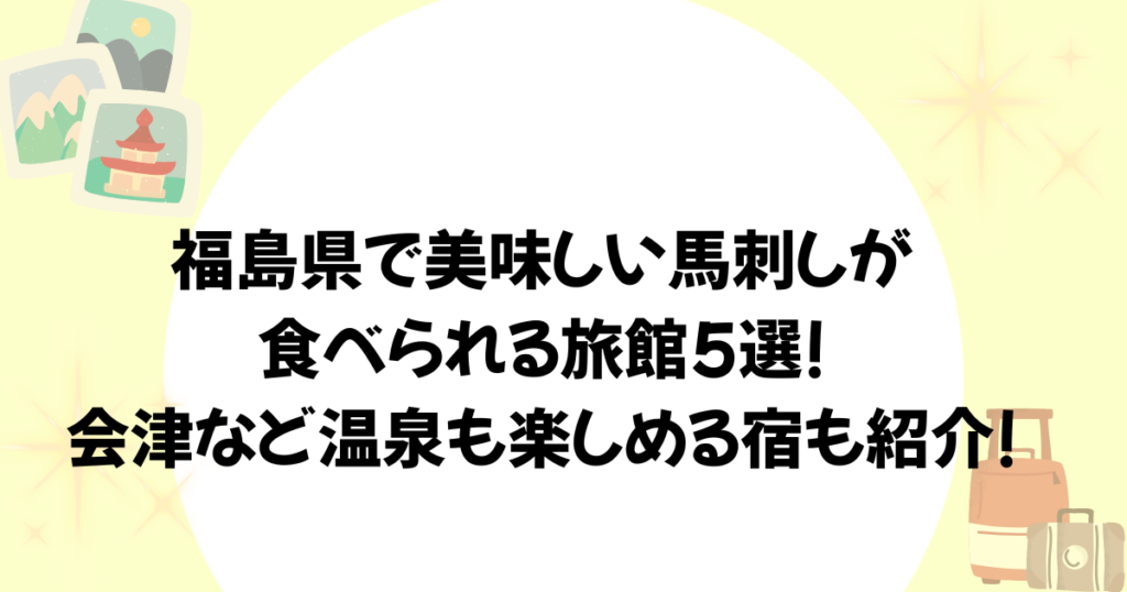 お悩み 福島で馬刺しが食べられる宿を知りたい 温泉と一緒に会津名物の馬刺しを楽しみたい せっかく泊まるなら料理が美味しい宿を選びたい 会津名物の「馬刺し(桜刺し)」をどうせなら、宿でゆっくり温泉に入りながら本場の味を楽しみたいですよね そこで... -